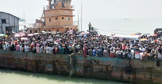 জানা গেছে, মুন্সিগঞ্জের শিমুলিয়ায় আইনশৃঙ্খলা রক্ষাকারী বাহিনী ঘরমুখো মানুষের স্রোত রোধ করতে ঘাটের প্রবেশ মুখে গাড়ি দিয়ে ব্যারিকেড দেয়। যাত্রীরা সেই ব্যারিকেড উপেক্ষা করে এক কিলোমিটার পথ হেঁটে ঘাটে জমা হয়। এ সময় তারা ঘাটে দাঁড়িয়ে ফেরি ছাড়তে হবে বলে স্লোগান দেয়।