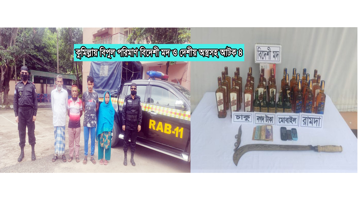 কুমিল্লা নগরীতে র্যাব-১১ এর সিপিসি-২ এর বিশেষ অভিযানে বিপুল পরিমাণ বিদেশী মদ ও দেশীয় অস্ত্রসহ ৪ জনকে আটক করা হয়েছে।