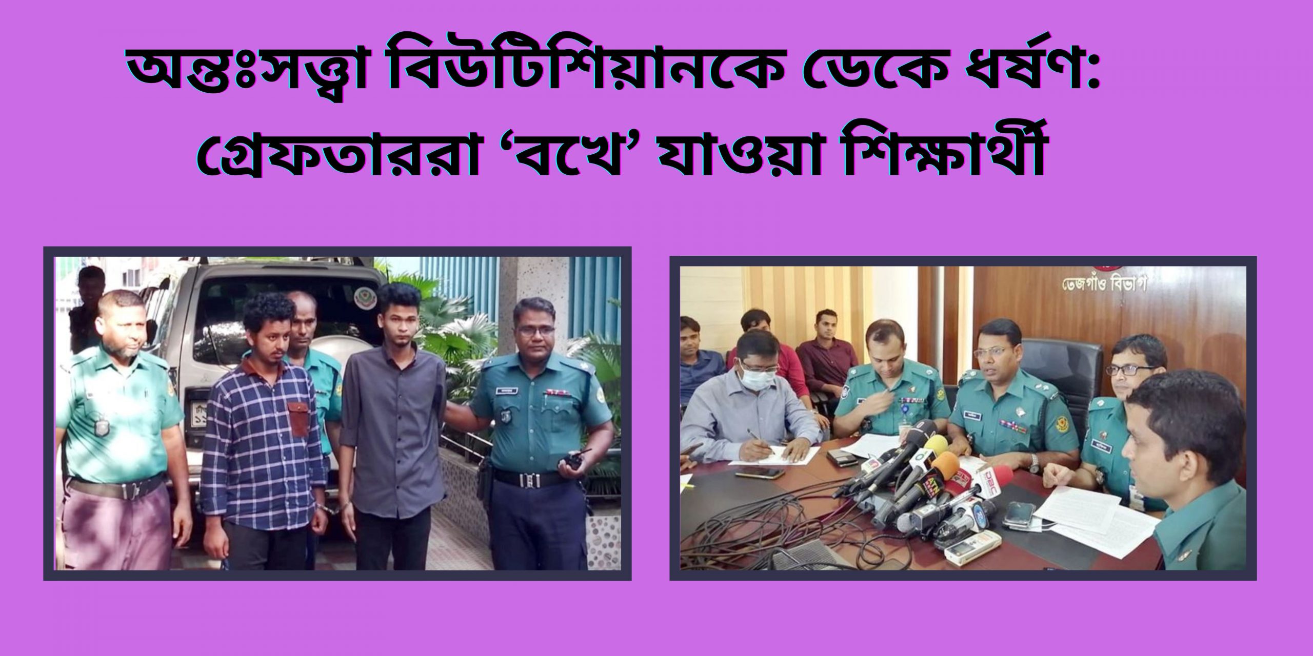 রাজধানীর শুক্রাবাদে পাঁচ মাসের অন্তঃসত্ত্বা এক বিউটিশিয়ানকে পার্লার সেবার কথা বলে বাসায় ডেকে সংঘবদ্ধ ধর্ষণের ঘটনায় দুজনকে গ্রেফতার করা হয়েছে। গ্রেফতাররা বখে যাওয়া শিক্ষার্থী বলে জানিয়েছে পুলিশ।