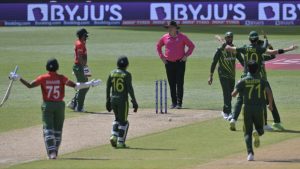 এরপর উইকেটে আসা সাকিবের সঙ্গে যা হলো সেটা ছিল অবিশ্বাস্য! আম্পায়ারের বিস্ময়কর বাজে সিদ্ধান্তে এলবি দেওয়া হয় সাকিবকে। শাদাব খানের বলে সাকিবের প্রথম বল মোকাবিলাতেই আউট দেন আম্পায়ার। আত্মবিশ্বাসী সাকিব রিভিউ নিতে দেরি করেননি। শান্তকে জানান দেন, তাঁর ব্যাটে লেগেছে বল। টিভি রিপ্লেতেও ব্যাটে-বলের স্পর্শ দেখা যায়। কিন্তু আম্পায়ার সেটা আমলে নিলেন না। তিনি তাঁর সিদ্ধান্তে অনড় থেকেছেন। হতাশ হয়ে সাজঘরে ফিরতে হয় বাংলাদেশ অধিনায়ক। দলীয় ৭৪ রানে তৃতীয় উইকেট হারায় বাংলাদেশ। এতে ম্যাচের মোমেন্টাম পেয়ে যায় পাকিস্তান।