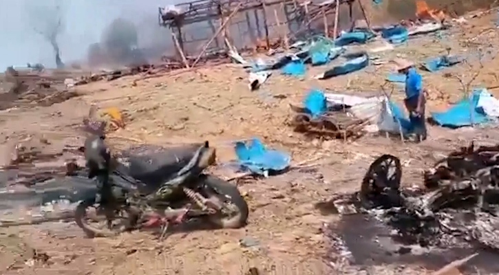 সেনা শাসনের বিরোধীদের আয়োজিত একটি অনুষ্ঠানে যোগ দেওয়া এসব মানুষের ওপর গতকাল মঙ্গলবার বোমা হামলা চালায় সামরিক বাহিনী। প্রত্যক্ষদর্শী, স্থানীয় গণতন্ত্রপন্থি গোষ্ঠীর সদস্য এবং মিয়ানমারের স্বাধীন মিডিয়ার বরাত দিয়ে আজ বুধবার এক প্রতিবেদনে এই তথ্য জানিয়েছে বার্তাসংস্থা এপি।