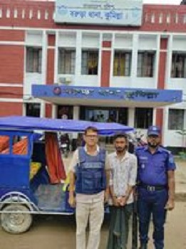 শুক্রবার (১১ আগষ্ট) দুপুর দেড়টায় বরুড়া উপজেলার হরিপুর গ্রামের মনির হোসেনের ছেলে কামরুল হাসান ওরফে মেহেদী হাসান(২৬) তার অটোরিক্সা দিয়ে বিভিন্ন জায়গায় গাড়ি চালিয়ে জোহরের নামাজ পড়ার জন্য বরুড়ার খোশবাস উত্তর ইউপির আদমসার পূর্ব বাজার জামে মসজিদের সামনে অটোরিক্সাটি রেখে নামাজ পড়তে যায়। পরবর্তীতে একই উপজেলার উত্তর শালুকিয়া(লতি বেপারী বাড়ী)গ্রামের মৃত. হারুন হোসেনের ছেলে শাকিল হোসেন(২১)সহ অজ্ঞাতনামা ২/৩ জন ও গাড়ির চালক এর পিছনে এসে নামাজের জন্য দাঁড়ায়। নামাজ শুরু হলে সেজদার সময় দেখতে পায় যে, চালকের পিছনে উক্ত আসামি নাই। পরে নামাজ শেষে ভিকটিম কামরুল হাসান প্রঃ মেহেদেী হাসান মসজিদ থেকে বাহির হয়ে দেখতে পায় যে তার ব্যাটারি চালিত অটোরিক্সাটিকে বা কারা চুরি করে নিয়ে যায়। সাথে সাথে বাদী চারদিকে খোঁজ করতে থাকে। বাদীর গাড়িতে জিপিএস ট্র্যাকার থাকার কারণে আসামীর অবস্থান সনাক্ত করা সম্ভব হয়। পরে জিপিএস ট্র্যাকার মাধ্যমে উপস্থিত সাক্ষীসহ এলাকার কয়েকজনকে নিয়ে আসামীর অবস্থানকৃত স্থানে বুড়িচং উপজেলার কাবিলা জুতা ফ্যাক্টরির সামনে দুপুর সোয়া ২ টার সময় উপস্থিত হয়ে দেখতে পান যে বাদীর অটোরিক্সাটি চালিয়ে নিয়ে যাচ্ছে দেখে ডাক দিলে বাদীকে দেখে চালক লাফ দেয় এবং গাড়িতে থাকা অজ্ঞাতনামা ২/৩ জন দৌড়িয়ে পালিয়ে যায়। সাথে সাথে বাদীসহ তার সাথে লোকজনের সহায়তায় বিবাদী শাকিল হোসেনকে আটক করে।