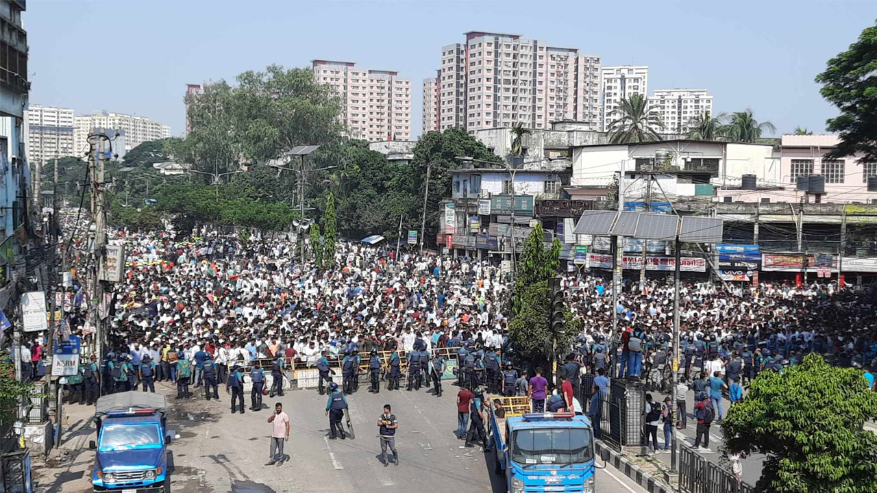 শনিবার (২৮ অক্টোবর) সকাল ১০টার পরে রাজধানীর আরামবাগের নটরডেম কলেজের সামনে গিয়ে দেখা যায় এমন চিত্র।