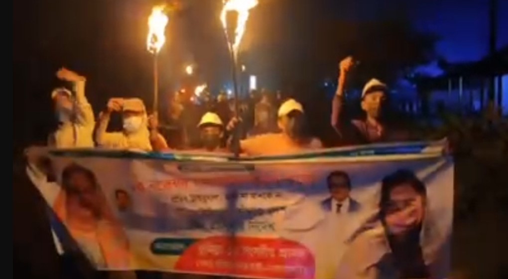 কুমিল্লা-চাঁদপুর মহাসড়কের সদর দক্ষিণ-লালমাই উপজেলার সীমান্তবর্তী বাংলাদেশ বেতার এলাকায় মশাল মিছিল করেছে নিষিদ্ধঘোষিত ছাত্রলীগের নেতাকর্মীরা।