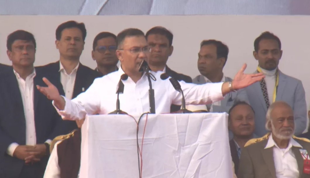 বিকেল ৩টা ৫০ মিনিটে রাজধানীর ৩০০ ফিট সড়কের সমাবেশস্থলে পৌঁছান তারেক রহমান।
