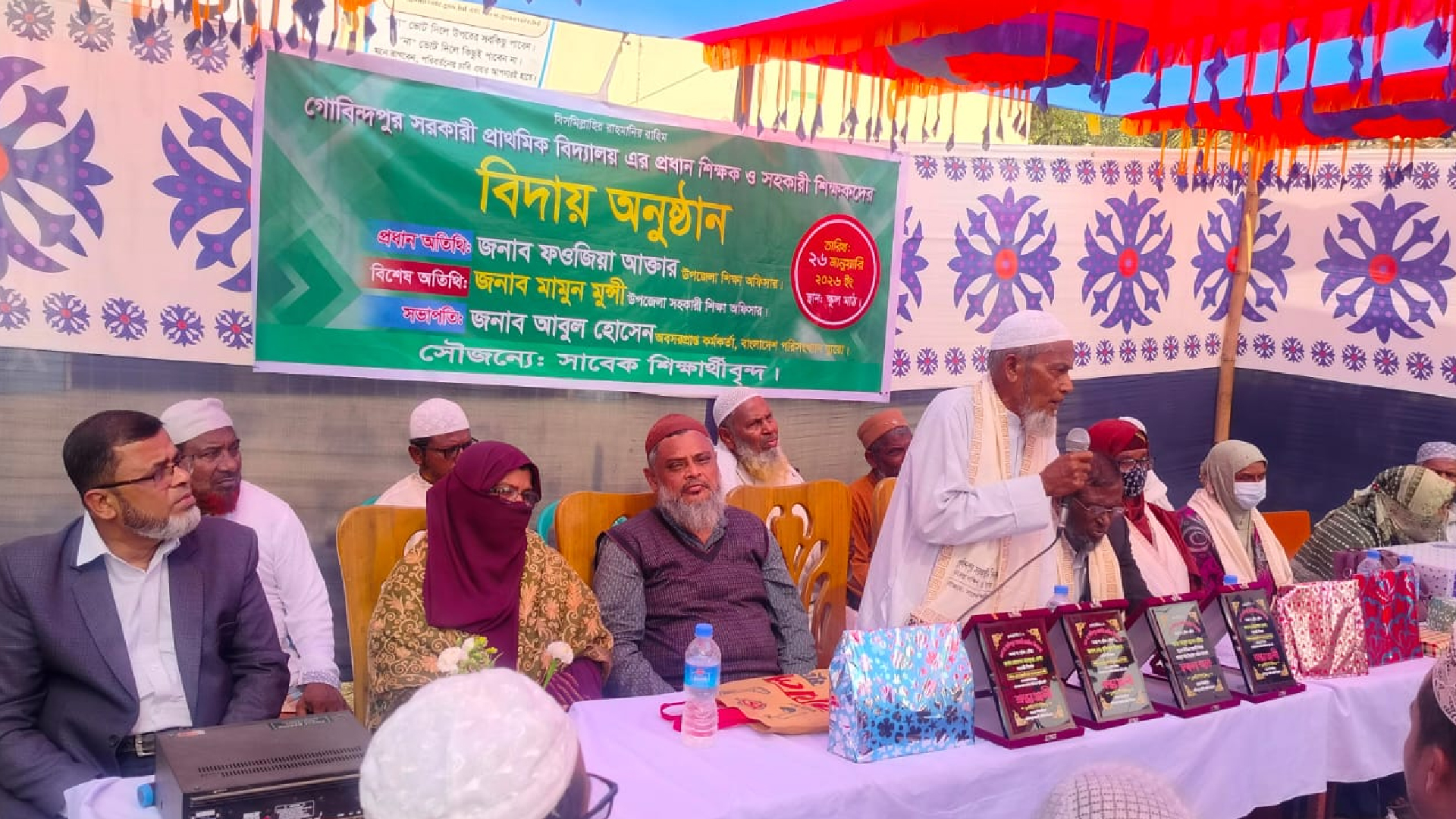 গোবিন্দপুর সরকারি প্রাথমিক বিদ্যালয়ের প্রধান শিক্ষক ও সহকারী শিক্ষিকার বিদায় সংবর্ধনা প্রোগ্রাম অনুষ্ঠিত।