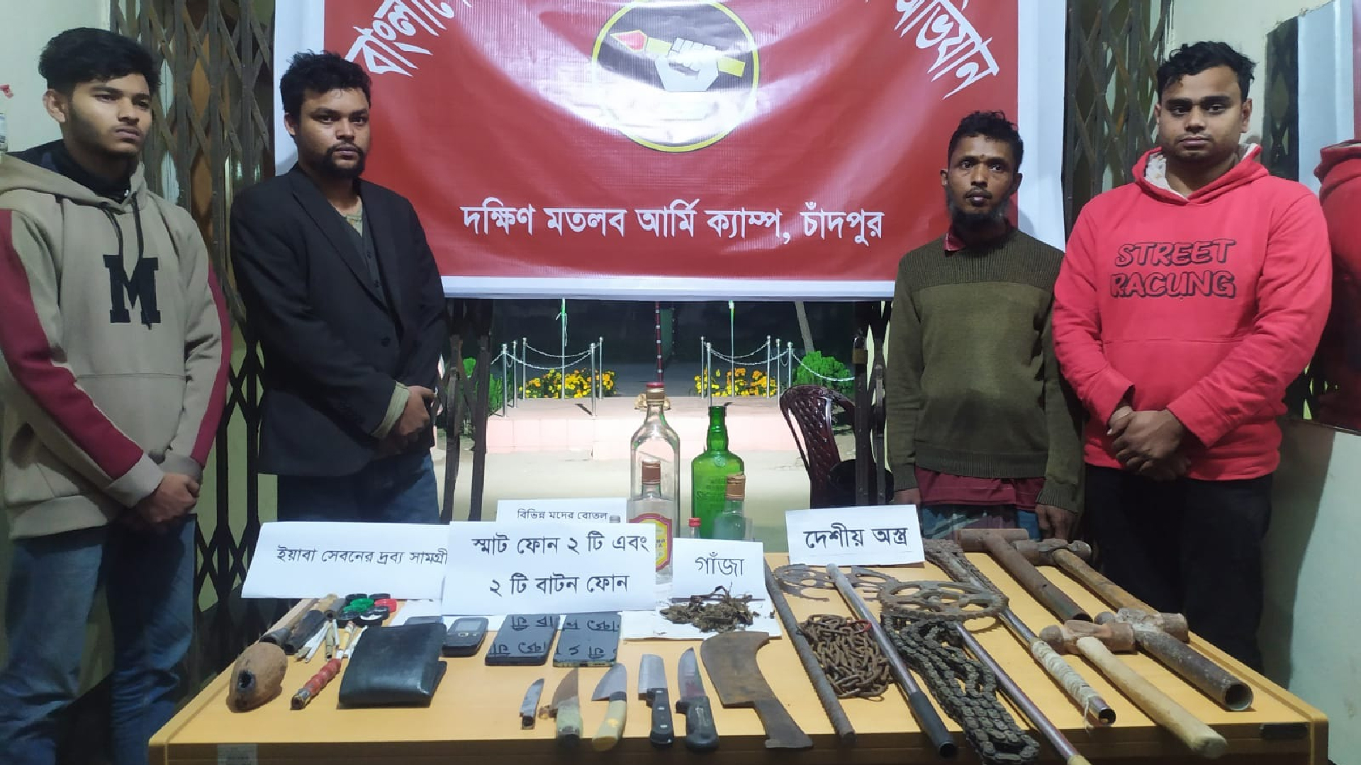 চাঁদপুরের মতলব দক্ষিণে দেশীয় অস্ত্র ও মাদকসহ ৪ জন আটক