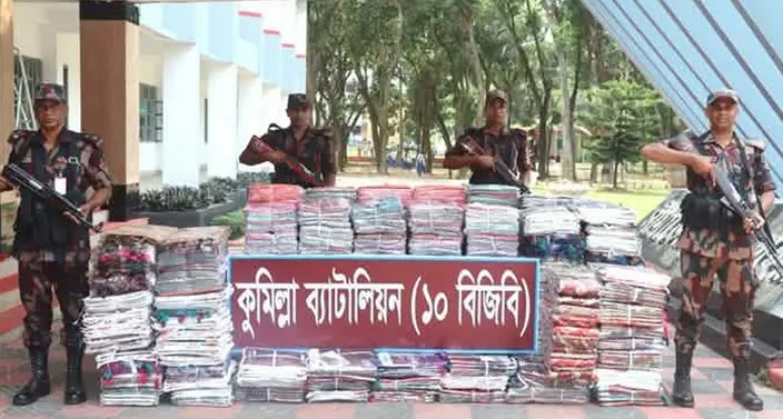 কুমিল্লায় ৭২ লাখ টাকার অবৈধ ভারতীয় শাড়ি জব্দ করেছে বিজিবি